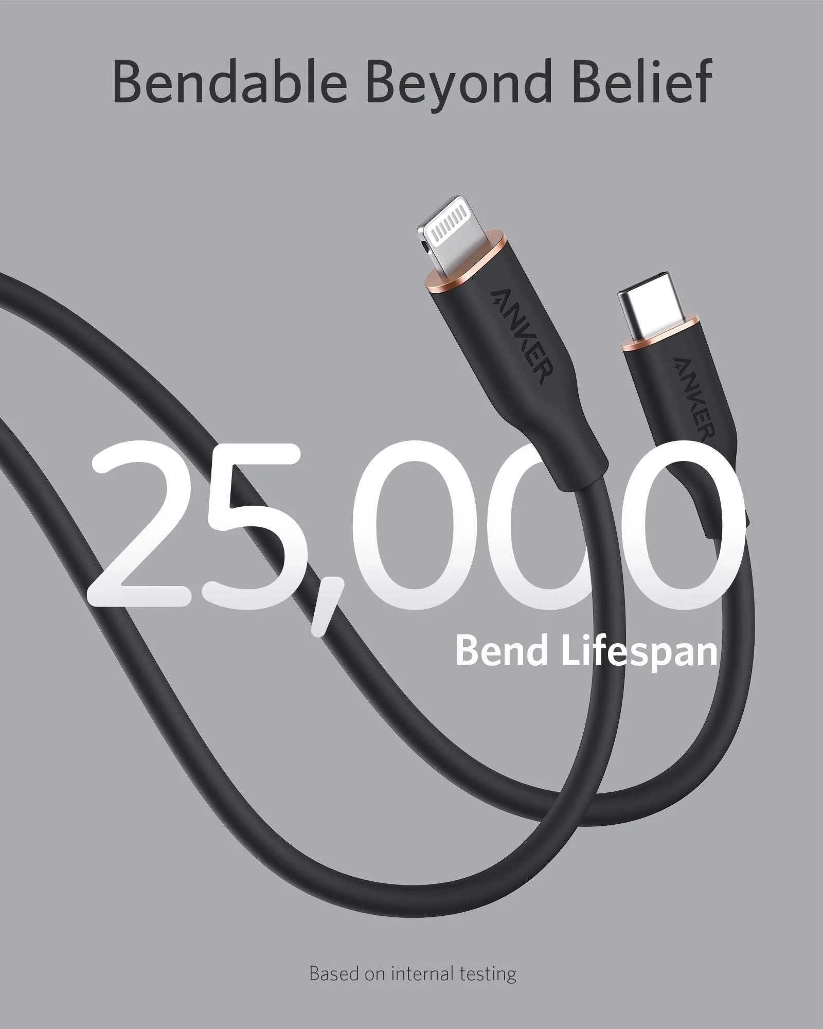 Features a triple-layered system of copper wires, flexible graphene, and silicone for enhanced flexibility without any loss in durability. The result is a cable with a tensile strength of 220 lbs (100 kg) and a 25,000-bend lifespan. More than enough to take the strain of a dangling phone or tablet.
